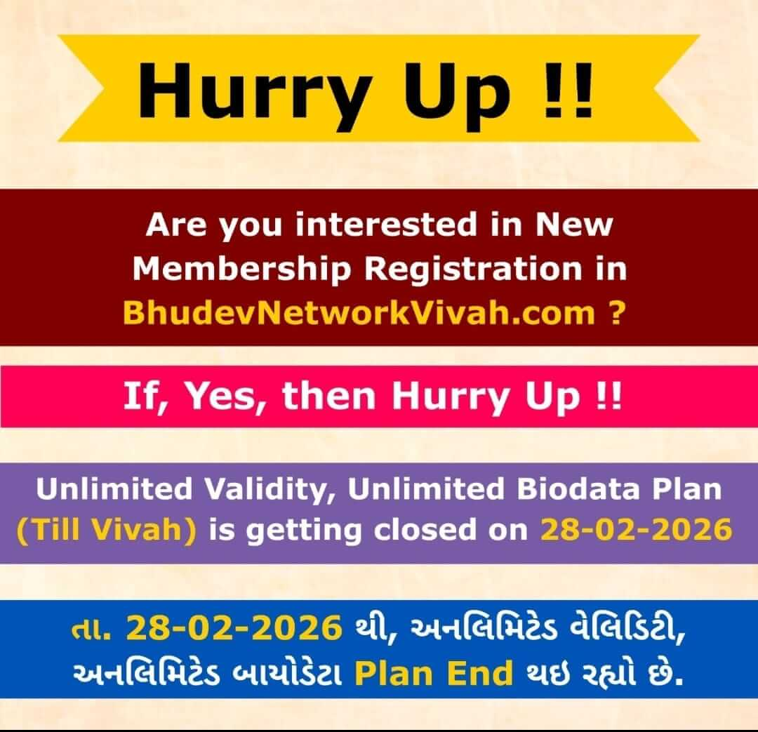174) શું તમારે આપણી ભૂદેવ Vivah વેબસાઈટ નો 200% બેનીફીટ લેવો છે ? પોતાની ચોઈસ મુજબ નું મેરેજ પાત્ર સર્ચ કરવાનું 1 વર્ષ નું કાર્ય, માત્ર 1 મહિના મા સંપન્ન કરવું છે ?
